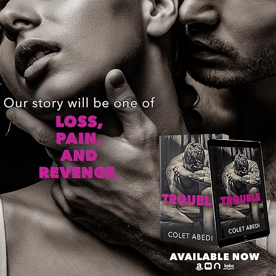 Is dark, erotic romance that has you on the edge of your seat, throws you for a loop, and traps you in your thing? Colet Abedi’s Trouble is for you! It’s sexy, steamy, has a few twists you won’t see coming, and an HEA!