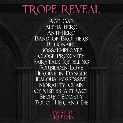 Twisted Truths is a dark, contemporary, billionaire, workplace romance with a tortured hero, touch her and 💀, and a secret society!