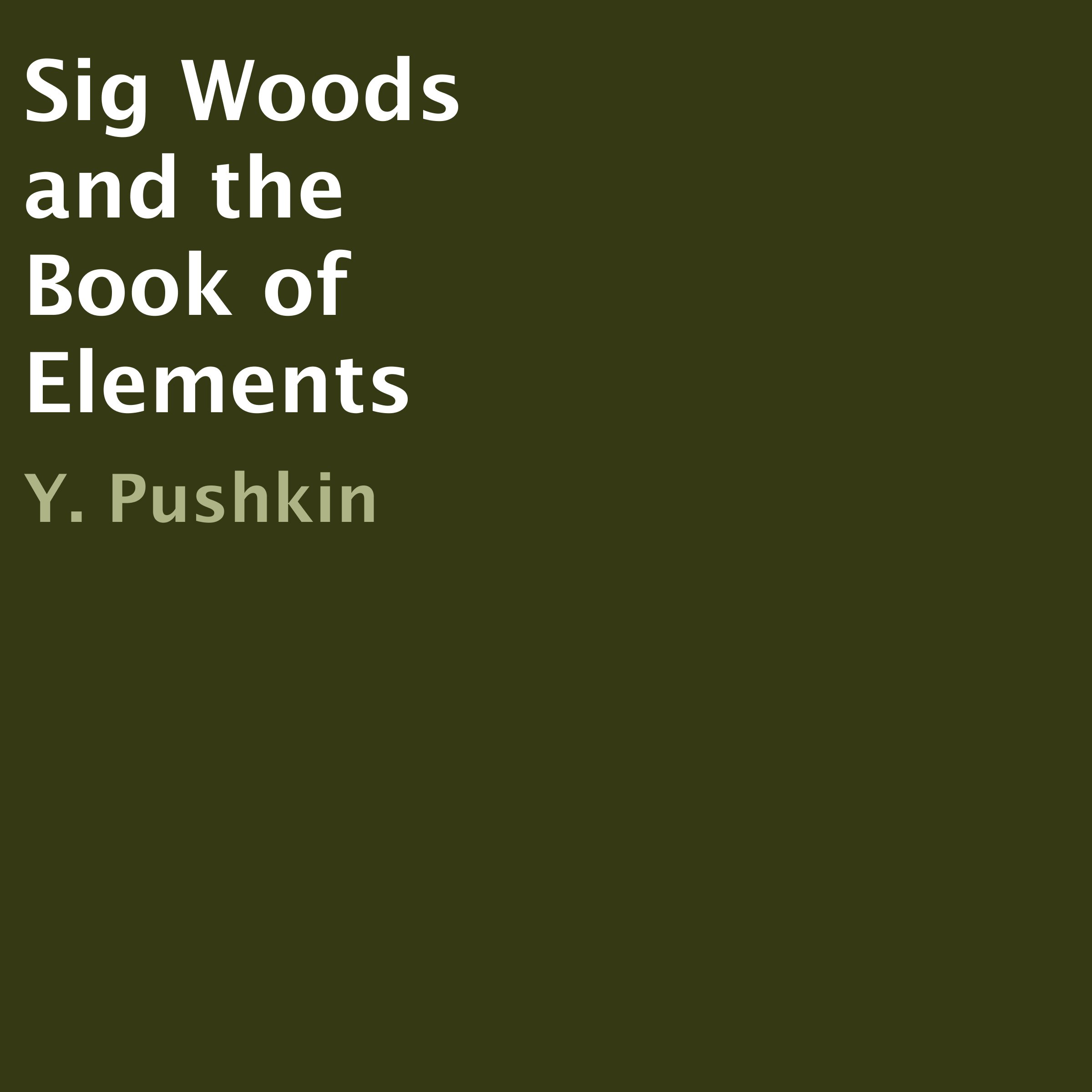 Sig Woods was a scrawny boy about 16 years old, shaggy dirty blonde hair, piercing green eyes, and a thoughtful look in his eyes. Ever since he could remember, Sig loved nature and the magical greatness it gave. Discovering one day that he had the power to control nature, Sig bands together with his neighbor, Ellie to go on an epic quest. Sig must band together with friends and allies to discover the Book of Elements. Can he combat an evil foe?