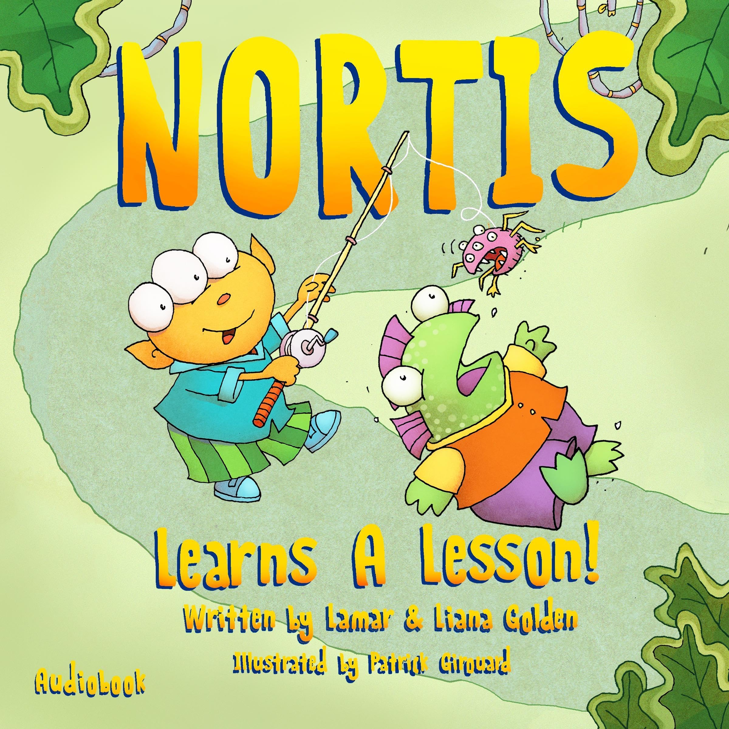 I love that a father and young daughter team have written this and a few other picture books. I was particularly charmed by the end of this book, which had a dedication written by the daughter first, followed by the father, and finished by the illustrator, I believe. I'll admit I am on the fence about audiobooks for children’s picture books for several reasons. First, I believe stories are best shared with a child by a parent or caregiver, not read by an anonymous narrator. Second, audiobooks lack the critical visual element of a picture book. Among the many children's picture books I've listened to in audiobook format, this is one of the better ones. Why? The narrator goes out of his way to make it a unique aural experience, using distinct voices, vocal effects, and sound effects. I wasn't necessarily wild about ALL the sound effects, like the fart sound used to show the intestinal distress of those who Nortis and his crew had pranked. Yes, the title character and his friends do, indeed, learn a lesson when what they thought had been a simple prank turned out to have disastrous, not humorous, effects. Like children's books that try to impart a moral lesson, it feels a bit heavy-handed at times, but I did thoroughly enjoy what the narrator put into it.