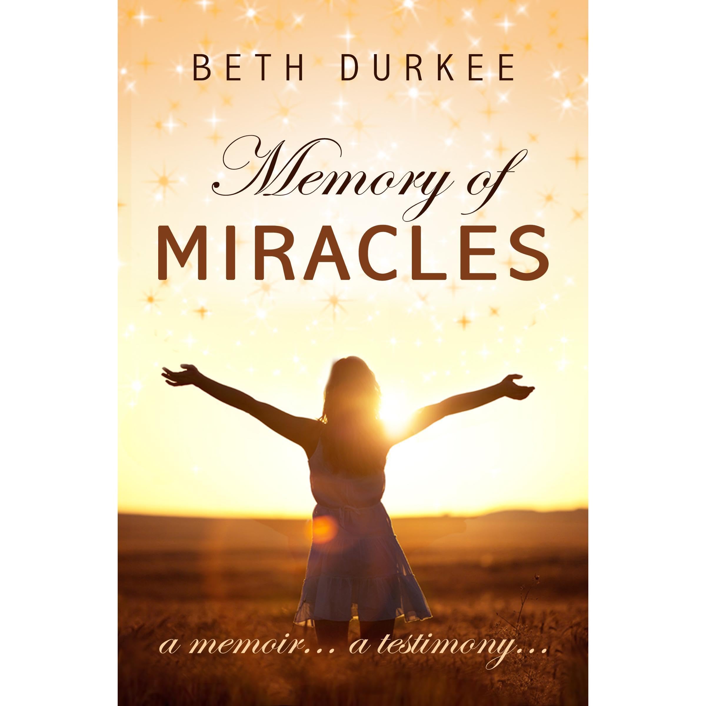 Memory of Miracles by Beth Durkee is a must-read true story. The author discovers influences in her life from age three throughout college that she believes are coming directly from God. She has undeniable faith in the power of prayer. To have survived [two] strokes before she was eighteen is a miracle in and of itself. A captivating statement was “to be able to see a miracle, one must first believe.” The author tells her story of miracles, her journey through joy, sadness, pain, happiness, and implausible belief, and faith in why situations occur when they do and for what reason. This story should inspire others to have faith. --Gracie Bradford for Readers' Favorite