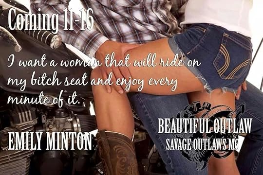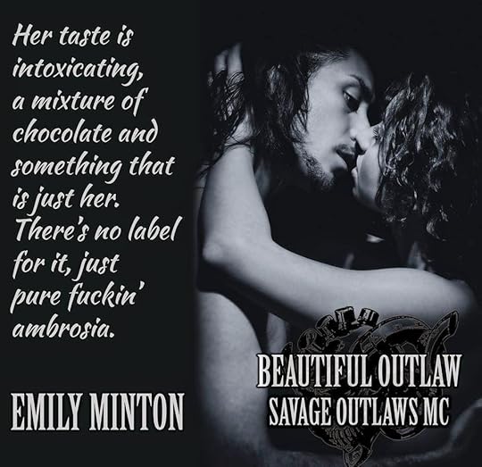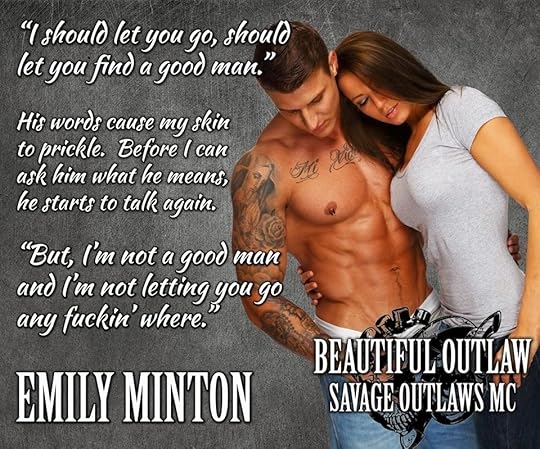 This was the first book that I have read by Emily Minton and I can say for a fact that it will not be the last. Beautiful Outlaw is the first book in the Savage MC series and believe me people when I say it will take you on one hell of a ride. At times I was cursing out Bowie, mentally wanting to slap Shay, as well as slapping a couple other people upside the backs of their heads and mumble that they are idiots. The thing is though, I could not put this book down even when I wanted to do one of the things I just mentioned. Beautiful Outlaw is not a beautiful book about a biker finding his woman, nope. This is gritty at times, it will make you upset for Shay and her past, it will piss you off when Bowie is an asshole, and it will also make you want to read more about the men of Savage MC.
