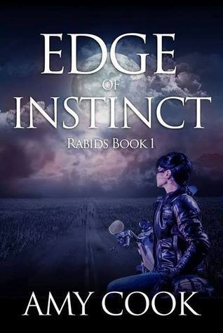 Edge of Instinct ( Rabids Book # 1)by Amy Cook tells the story of a young woman named Amiel, who has led a sheltered existence and lives in a world with Rabids and Cutthroats(zombie like people who hunger for flesh). Malinda, Amiel’s mother, is like the “Godfather” of the area where they live, and expects Amiel to act like “high society” and behave herself. Amiel disliked her mother because all she cares about is money and what others think about them. Jaron, Amiel’s brother and best friend is in the hospital dying.
