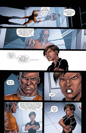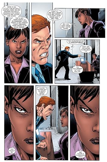 I don't really enjoy the turn the series has taken. It's just meandering. The introduction of Vic Sage (who was the Question pre New 52) is supposed to create more drama but he's characterized as if he's a 6 year old. This guy is supposed to be running a government agency but he acts like a child. It's really some piss-poor writing (and editing for that matter because no editor should let this pass).