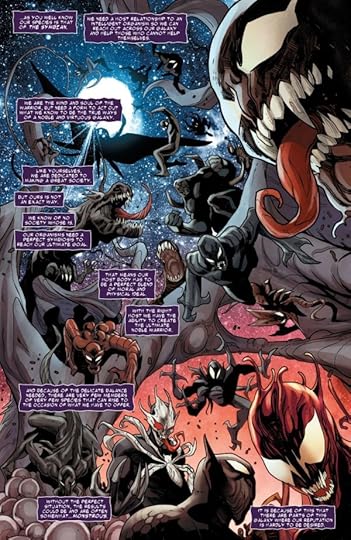 The latter part of the book was pretty interesting but would probably have been even more interesting if I were invested in the character of Venom. It involves a trip to the planet where the symbiote originally came from. It was a visually interesting place, with some creative artwork.