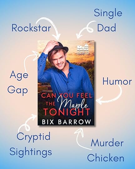 Can You Feel the Maple Tonight is a low-angst, small town contemporary MM romance with an age gap, a single parent, musical interludes, something strange in the woods, a giant tortoise, hats for every occasion, and a murder chicken.