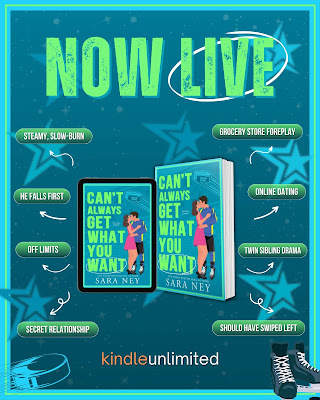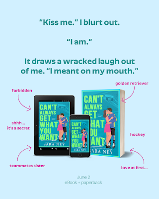 I know when Sara Ney releases a book, I will be loving the quirky banter, the laugh out loud moments and the story. Can't Always Get What You Want is just that. It follows Luca and Nova as they flirt, secret date and fall in love. Luca is a professional hockey player and tired of the dating scene. He is also Nova's brother's teammate. Nova is tired of the same guys. She isn't supposed to date her brother's teammates. They both end up on a dating app, have some flirty banter and the rest is history. This story will have you laughing, smiling and feeling good. Their connection and chemistry are apparent from the start. I just loved the texting between them. It's a perfect rom com! I loved the first book where we met Nova's brother and was so excited for this book. It's a brother's teammate, secret dating, he falls first, forbidden hockey romance. I can't wait for the next book that tells Poppy's story.