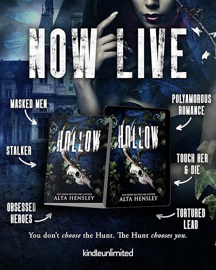 If you enjoy dark stalkers, poly relationships, masked men, daddy issues, and the touch-her-and-die trope, grab yourself a copy of Hollow! You won’t be disappointed.