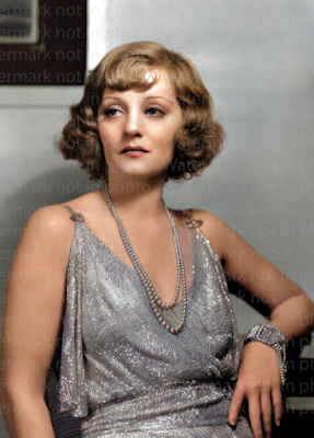 Freddie has a good eye for these things, and says 'Haskell was with a woman who wore a stylish blue dress with crystal beadwork, and she had ropes and ropes of pearls. She had bobbed light-colored hair and was pretty in a kittenish way.'