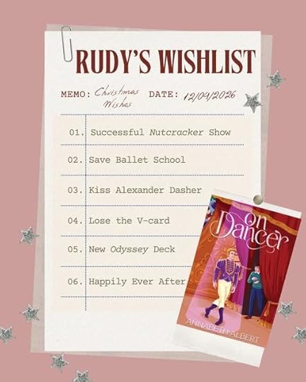 This story is a lovely and cosy escape, perfect for curling up with during the holidays. My heart really went out to Alexander, a famous ballet dancer dealing with a serious injury, so vulnerable. Also, I absolutely adored Rudy, the sunny production assistant who has crushed on Alexander for years. It's so touching to watch these two find friendship together. Even though they seem like opposites, they help each other heal while working on The Nutcracker. Between the moments of bonding over Rudy's love of gaming, and the meddling of their mothers, their journey from friendship to romance is handled with such care. Annabeth has put together a tender slow burn that really celebrates character growth and the joy of a well earned happy ending. The epilogue is delightful. I did find it a little repetitive in parts, but nothing much to take me out of the story. It's the perfect escape for the Christmas season. 🎄🩰🎮👨❤️💋👨🥰