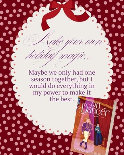 I'm not a huge fan of Christmas romances in general, but I particularly like this author's. And in *On Dancer*, Annabeth Albert blends Christmas romance with classical dance, which was bound to appeal to me.
