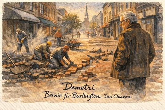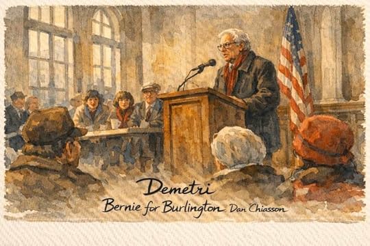 I devoured this magnificent book: part exploration of a transformational moment in one city's history, part memoir of the boy who grew up there. My wife and I moved to Vermont when we in our early 20s', drawn here first by an article in the New York Times travel section about "the People's Republic of Burlington, VT," and it was love at first sight. Dan Chiasson's remarkable book captures a world in transition, Burlington and Vermont in the 1970s and 1980s: a GE plant making gatling guns while two hippies were making ice cream a few blocks away, for instance. Chiasson was here, even if his frontal lobe was still that of a skateboarding teen, which is what makes this book so charming and (often) deeply moving. And, yes, the U.S. Senator with (my opinion) a deeply accurate moral compass is at the center, but this is also a tale about a kid who'd become one of our great poets and a city that has become one of the most fascinating in the nation. There are some wild photos in this book, too, including one that -- speaking for all the readers here on Goodreads -- is bonkers. On page 82, there’s a 1979 photo of Goddard writers, including Tobias Wolff, Jane Shore, Raymond Carver, Geoffrey Wolff, Donald Hall, Louise Gluck, and Stephen Dobyns. "Bernie for Burlington" is an absolute gem.