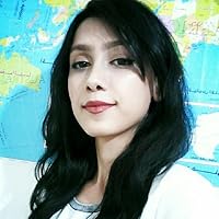 "The girl turned to him, an eyebrow arched, containing a smile by biting her bottom lip."