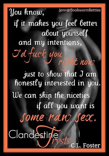 Clandestine Trysts is a collection of steamy short stories from the always fantastic C.L. Foster. There are eleven stories included; something for everyone. This was a quick and enjoyable read for me, an easy way to escape for an afternoon. Each and every story was well written, had characters you wanted to learn more about and steamy encounters you didn't want to end. The romance lover in me was sated, that is for sure.