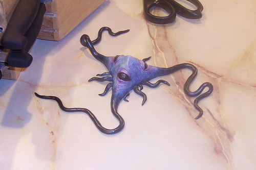 The creepiest thing about this is that the parasites are triangle. I’m sorry but no. That is not an acceptable shape. Neither is the colour blue. I will accept a lot of things from a book like this but I will not accept blue triangles.