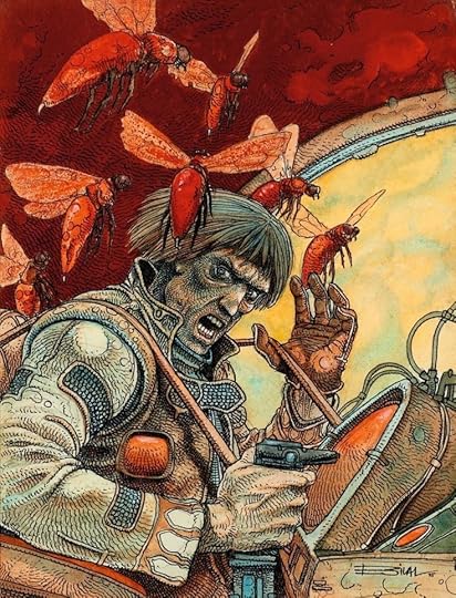 Dumarest, on the journey to Hive, where he hopes to find someone who has a clue to the location of Earth, deduces that Derai is telepathic. Upon arrival, he becomes involved, against his better judgement, in Derai’s family politics. Her great-great grandfather has been kept alive long beyond his years by the use of the royal jelly produced by the mutated bees of the planet. It is a resource rigorously controlled by a cabal of the Families. The grandfather, however, has become so transformed by the jelly that he can no longer communicate.