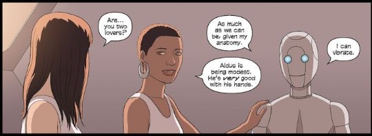 Oh, and there are gay people here (who woulda thunk, amirite?!). And it's hinted that some of the robots are trans! And several characters are non-white.
