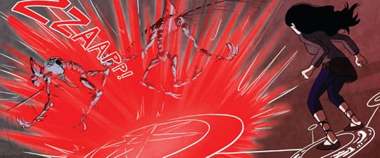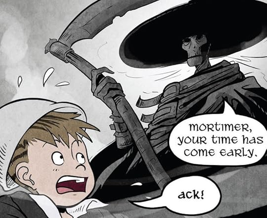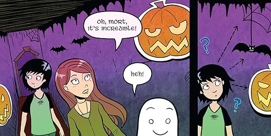 The two-parter "The Realm of the Dead" and "See Ya!" are some of the few chapters that read better in the original release schedule. Mort hasn't appeared often, but when reading over the course of years, the characters form a background radiation of the mind, and it's easier to believe that Annie and Kat really are great friends with Mort, lending these two chapters the emotional heft they need to work. It's impossible for me to really know what someone going into this series blind would think of this development, but reading now it feels like too much too fast. Still, Siddell avoids getting too maudlin and humourless, which is worth a lot.