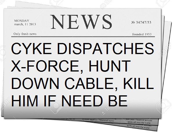 WTF, Scott. It's your OWN SON. Led by Wolverine, the X-Force go on a mission to get to Cable before anybody else. If they can manage.