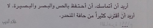 هي متعة وشعور ينتابني باستمرار، لا علم لي لما، إنما هو ذالك الشعور بالجذب المستمر لعلاء بكل ما كتب، لا اقراء الكتب أكثر من مرة، لكني مشدود لهذا الكتاب كأنه مخدر ادمنه، هو شعور بالذنب بالفقدان، اقراه عوضا عن الانتحار كما كتبه هو عوضاً عن الانتحار، نفس الدائرة ونفس المركز وتختلف الأسماء ويبقى الفعل واحد منبثق إلي ما لا نهاية.
