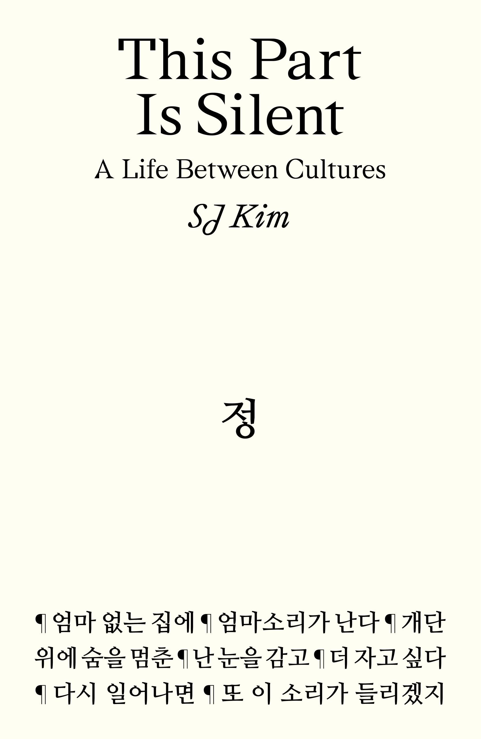 Etelä-Koreassa syntynyt, Yhdysvalloissa kasvanut SJ Kim kirjoittaa omaelämäkerrallisia esseitä kulttuurien välissä kasvamisesta ja elämisestä. Teemoina ovat hiljaisuus, luovuus, rasismi, valta. Kimin kirjoitustyyli on runollisen kaunis. Kokonaisuus jätti kuitenkin jollain tavalla kylmäksi - tarttumapintaa oli vaikea löytää.