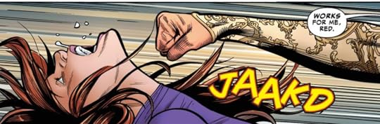 Now on to the art… this is what truly killed it for me. Greg Land is one of the worst artists I’ve come across. He’s a controversial figure in comics (seriously, go look it up if you don’t already know) and I’m annoyed with how it looks like every woman in this stepped out of a porno. I just don’t care for that in my comic books. I mean, the one panel where she looks like she’s orgasming after getting punched in the face? Please. Holy male gaze, Batman. And let's not forget to mention that all the women seem to look the same.