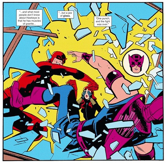 But wait for it..it's about to get worse. DDD really puts an emphasis on the first "D" (Douchebag, remember?) by changing into this bizarre red suit that looks like it was designed by a possessed Gianni Versace on LSD. It is the stupidest thing I've ever seen. Then he helps out the Owl's Daughter. *sigh* So uh I was incredibly disappointed by the poor quality of this volume. I don't know if he was just bored and thinking up stupid stories to write- because if he was then bravo! Mission accomplished. The artwork is junk-trying far to hard to be trendy and stylish but mirroring the plot in its mediocrity. If this is what DD has come to-I'll pass..I'm going to go back and read the good stuff I missed. This is putrid.