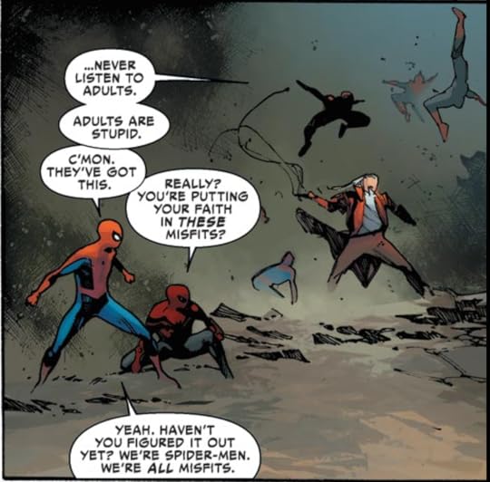 I was generally happy with how this event turned out. There's plenty of cool action, and the various Spiders remain distinct enough to be separate characters. There's even time for a few moments for character development for versions of Spider-Man who will likely never be seen again! The ending did feel a bit rushed to me, and I'm somewhat skeptical of the usual comic book moral relativism: it's a terrible thing to crush a crystal holding the consciousness of a remorseless serial killer, but totally cool to trap a family of serial killers in a dimension that's literally poisonous to them so they have to live in a tiny bunker eating spiders for the rest of their lives. Because that's totally a sustainable lifestyle that won't lead to their imminent, painful deaths.