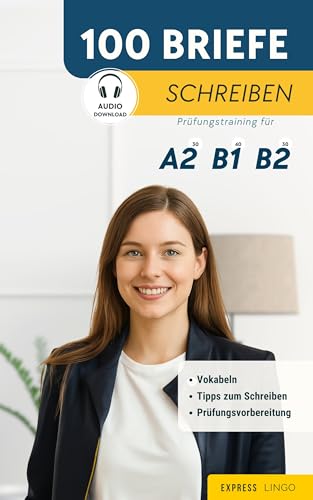 100 Briefe schreiben – Prüfungstraining für A2, B1, B2Geeignet für die Niveaus A2, B1 und B2100 realistische Briefbeispiele für A2, B1 und B2 Prüfungen & AlltagSchritt-für-Schritt-Anleitungen für jeden BriefReichhaltige Vokabellisten mit englischen ÜbersetzungenPrüfungstraining für DTZ (A2/B1), DTB, telc, Goethe & ÖSDAudiodateien zum DownloadPerfekt für Selbstlerner und Prüfungskandidaten Unser neues Buch „100 Briefe schreiben“ wurde speziell zur Vorbereitung auf den Schreibteil von Deutschprüfungen wie DTZ (A2/B1), Goethe-Zertifikat, telc, DTB und ÖSD entwickelt.