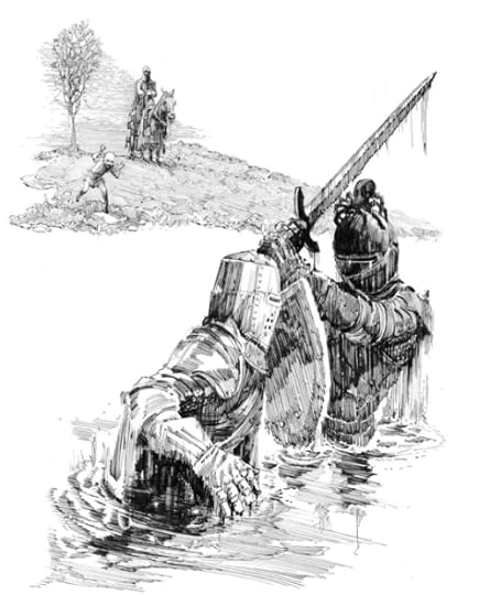 A drought has taken over the land and the first bit of "action" in the story is when Ser Bennis and Dunk go investigate why the stream that runs through Osgrey's land has dried up. They find that Lady Rohanne Webber of Coldmoat, a/k/a the "Red Widow," has built a damn, stopping the flow of the stream. Dunk is angered by this, but Bennis acts on his anger and attacks one of the Red Widow's men.