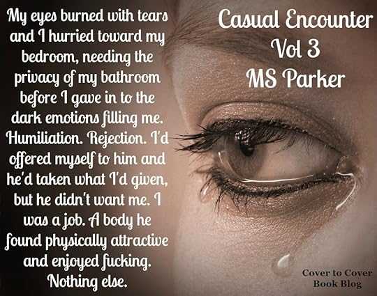 There are writers who release their work volume by volume and M.S. Parker is of the few that do it very well, Casual Encounter being one of those works. Her gift isn't just within the crafting of the story itself but knowing exactly when to cut the scenes so the reader isn't left annoyed but rather, intrigued, at what will happen next.