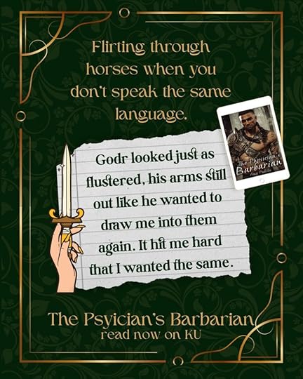 I love Godr, obsessed with him from the very beginning, wanted his happily ever after with each new book. I’m sooo glad he found it, found a partner, found a family. And our sweet and sassy neighborhood doctor from the previous book! Bonding over jokes and horse hugs.