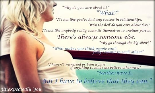 Unexpectedly You is a sweet, light, romantic read. I have read books by both authors, but not as a collaboration of the two. If you're looking for a dash of heartbreak broken up by romance and humor, look no further.