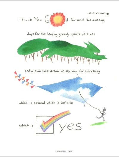 Next a couple from "SPRING" "i thank You God for most this amazing day:for the leaping greenly spirits of trees and a blue true dream of sky;and for everything which is natural which is infinite which is yes" by e.e. cummings