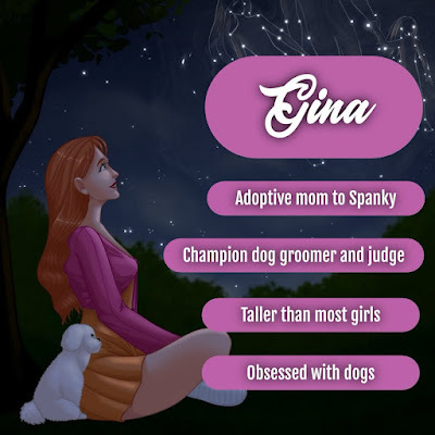 Gina Bradford hits me right in my weakness. She’s tall for a girl, with strawberry-blonde hair, bright green eyes, and a sweet smile. She’s also a champion dog groomer, judge, and owner of a pure-bred show poodle, who is also a notorious towel thief.