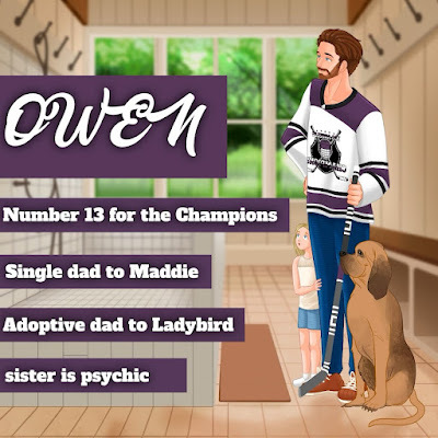 Owen is a single dad to a lovely 7 year old daughter. He is a professional hockey player that was recently called up from the minor league team to play for the LA Champions. He has a bloodhound named Ladybird who loves to sing to Shania Twain.