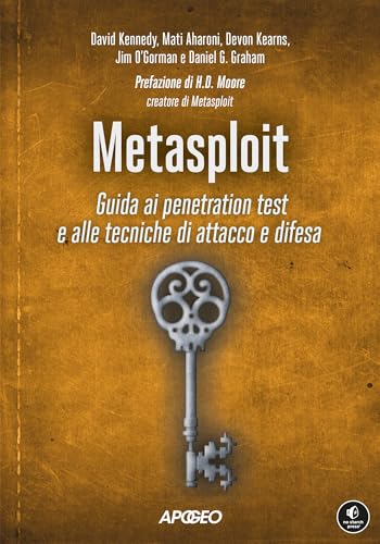 Metasploit è un framework open source progettato per identificare, sfruttare e testare falle di sicurezza informatica di sistemi, reti e applicazioni. Questo manuale aggiornato Penetration Test Execution Standard (PTES) insegna a sfruttarne al meglio la potenza partendo dalle basi per arrivare alle tecniche penetration test di Active Directory e ambienti cloud, tecniche moderne di evasione e codifica dei payload, generazione di documenti malevoli per exploit lato client e integrazione con strumenti come Nmap, Nessus e il Social-Engineering Toolkit. Attraverso esempi pratici ed esercitazioni, il lettore impara a condurre ricognizioni di rete, analizzare vulnerabilità, eseguire attacchi wireless e di ingegneria sociale, sviluppare moduli personalizzati, applicare tecniche di privilege escalation e utilizzare MSFvenom per eludere i sistemi di rilevamento. Una guida indispensabile per studenti e professionisti della sicurezza informatica, amministratori di rete, pentester ed ethical hacker che vogliono rimanere al passo con l'evoluzione delle minacce informatiche e delle loro contromisure.