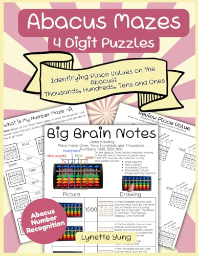 4-Digit Abacus Maze Puzzle Workbook: Learn Thousands, Hundreds, Tens, and Ones Place values on the Abacus and Number Recognition While Solving Fun Mazes