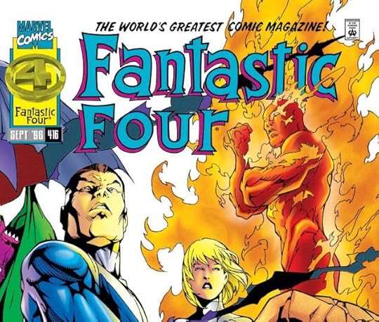 This third volume is a bit more action-packed than the last one, and the issues here deal a bit more directly with the actual Onslaught story, which I appreciated. One thing that did bother me, though, was a great deal of rather heavy-handed foreshadowing that the Avengers and the Fantastic Four would not survive the confrontation with Onslaught. Decades later, of course, I already knew about that, but I would have hoped it would be a bit subtler or maybe even not mentioned at all until it happened. Despite going a bit against my expectations, and having some rather horrendously designed costumes in a few cases, this was a good read, and I'm looking forward to finishing out this event.