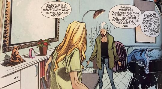 The first part of this book involves a former Captain Marvel, Monica Rambeau, and a giant robot that rises out of the Gulf of Mexico. The relationship between the two women is well done. I don't know anything about Monica though, so I feel like part of their banter loses its impact. The most interesting portion is how it relates to the levees in New Orleans weakening and how the heroes are going to help fix them. Too bad that didn't take up more of the story.