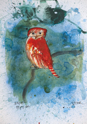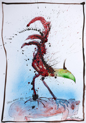 It's a collaboration between Ralph Steadman, artist; and Ceri Levy, author. Ralph draws pictures of Critically Endangered Birds and Ceri writes the text to accompany them.