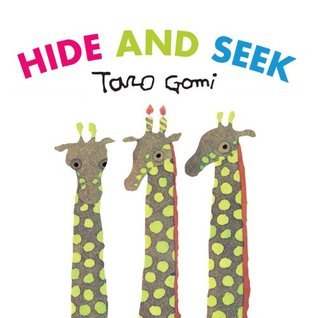The young reader is asked to locate an object hidden on the opposite page located somewhere on several animals of the same species. As always Gomi Gomi’s hidden objects are cleverly and skillfully disguised. Although this is a board book which are considered for the very young, this particular title because of its well disguised would be appropriate through kindergarten.