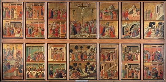 There is a painting by Lorenzetti. It's an Annunciation and Mary is wearing golden earrings. First of all one does not even realize they are there. Just the moment one reads the phrase, we start to pay attention, and he is right, she is wearing earrings. Shortly after he ask us readers, but how does it come that she, the virgin, personification of purity, wears earrings. The reason is a cultural one. It was discovered that all jewish woman, when they left the house in Siena (where the artiste is from) were wearing earrings. So here Lorenzetti isn't showing Mary as a woman, but her Jewish heritage, which I personally never realized when I was young. I knew Jesus used to be a Jew, but I never though about Mary. She was just always Jesus mother. So this really opened my eyes. I love those little details about the paintings, It also helps me to remember them better. Sadly it isn't going on like this forever. He only selected some paintings on which he wanted to talk about (he did a broadcast and it was later written down as a book).