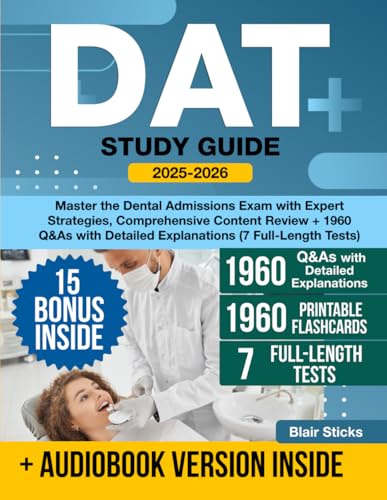 DAT Study Guide: Master the Dental Admissions Exam with Expert Strategies, Comprehensive Content Review + 1960 Q&As with Detailed Explanations