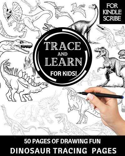 50 AMAZING dinosaur images for your tracing pleasure.Soft Grey Lines That are easy to followTracing is a fun art activity for all ages.Drawing Skill Enhancement. Perfect for all levels to improve drawing!Engaging and improves focusFormatted for Kindle Scribe experiment with different line weights, save your progress and come back over and over again