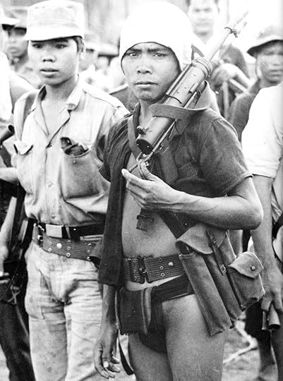 A Montagnard tribesman during training in 1962. Traditional loincloth and M3 submachinegun. Wikimedia
