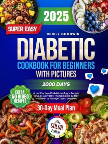 Super Easy Diabetic Cookbook for Beginners with Pictures: 2000 Days of Healthy, Low-Carb & Low-Sugar Recipes to Cook Every Day. The Complete 30-Day Meal Plan to Manage Type 2 Diabetes