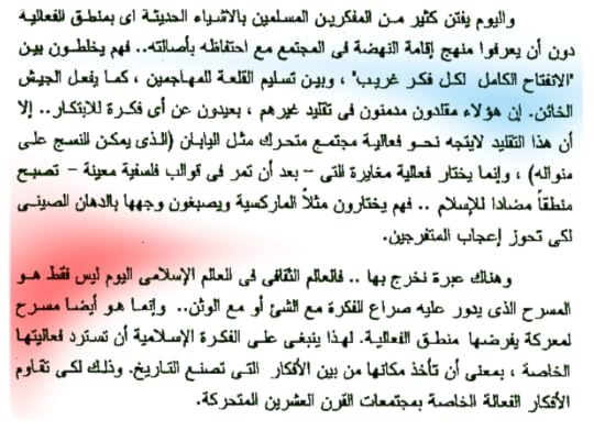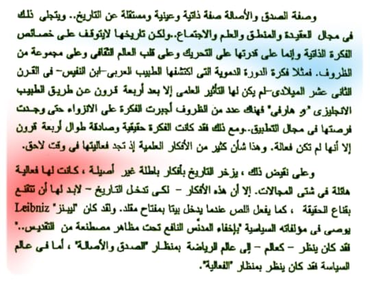 "فحين تبصر الأفكار النور التي صنعت تاريخ العالم، فإنها دائما فعالة طالما إنها أثارت العواصف وشيدت شيئا أو هدمته، أو أنها اكتفت بقلب صفحة من تاريخ الإنسانية وليست هذه الأفكار بالضرورة صحيحة بأكملها فالفكرة تكون صحيحة أو باطلة في المجال العقيدي والمنطق العلمي والإجتماعي"