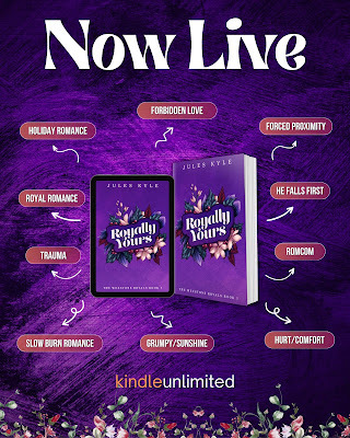 Wow, I cannot believe this is a debut novel by Jules Kyle! Thank you to The Author Agency and Jules Kyle's team for an ARC of Royally Yours! I truly did not know what to expect from this book but it delivered. Birdie falls down on her luck when her apartment is bought out and she's being evicted. What's a girl to do, other than enter a Bachelor-style competition to win the hand of the Crown Prince of Wexstone, Oliver's, hand in marriage? Enter a complication in Knox and you've got yourself a will they, won't they dilemma and behind the scenes plotting to make sure everyone ends up right where they're supposed to be! This was a great book with a brand new world that Jules Kyle is building with a set up with even more stories to come - and I can't wait!