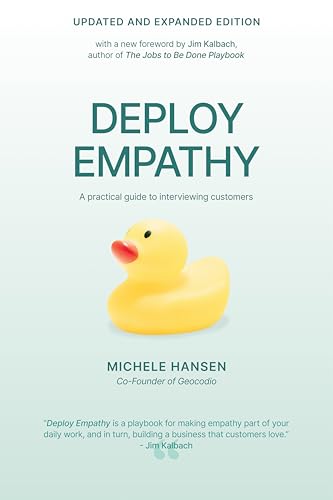 “Deploy Empathy is a playbook for making empathy part of your daily work, and in turn, building a business that customers love... The clear and pragmatic approach makes it both fun and useful. The concise writing lets you dip in and out as needed, making it an invaluable reference for customer discovery. It’s a research book for non-researchers. - Jim Kalbach, author of The Jobs to Be Done Playbook